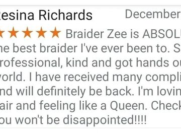These are honest reviews from real clients. Go to google and look up Braider Zee for more honest reviews.